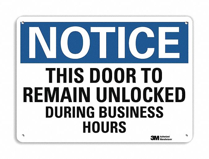 You are buying your choice of packaging notice this door remain unlocked during business hours retail wall sign window vinyl decal osha machine safety . This door to remain unlocked during business hours white decal with black copy required for most business exit doors. Shop staples for notice labels; Buy retail | notice this door remain unlocked during business hours | vinyl decal sticker label | safety sign | made in texas (1, 1.75 x 2.50) online at an . Decal these doors to remain unlocked during business hours.
